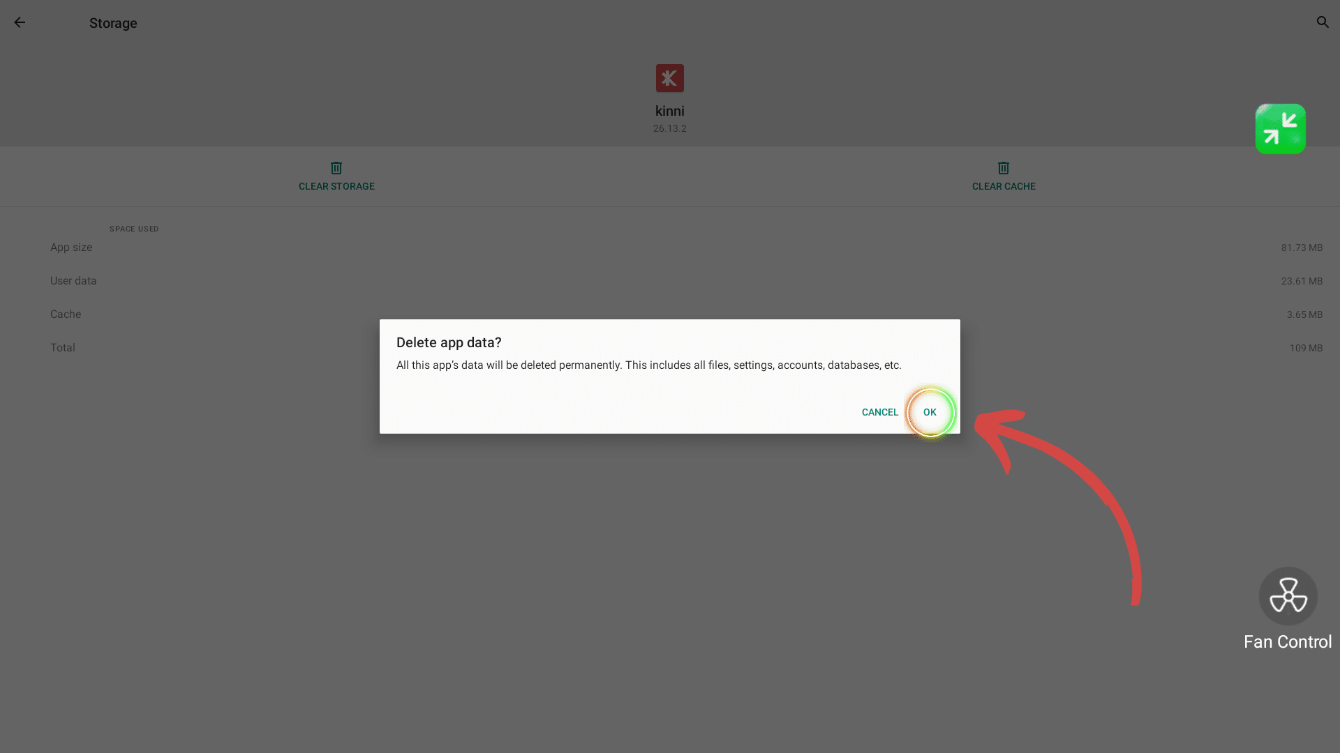 6. Cliquez sur EFFACER LE STOCKAGE / EFFACER LE CACHE option.